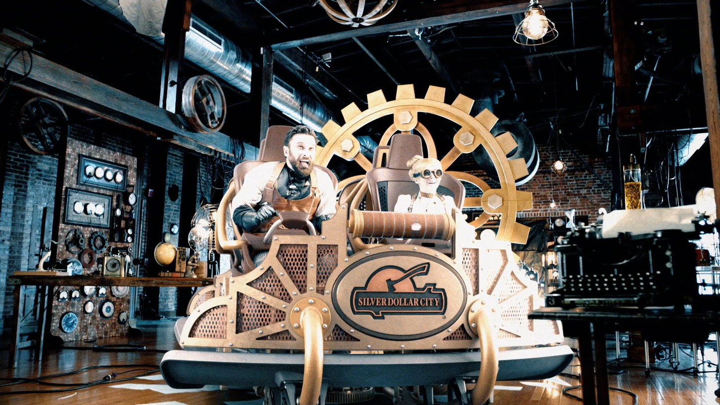 We were tasked with creating a commercial for the world’s Fastest, Steepest & Tallest Spinning Coaster. Great assignment! The only catch… the ride didn’t yet exist. So, we responded by creating an entirely CG replica of Time Traveler's iconic time machine coaster car. The crux of the gag was getting the CG car to realistically travel from a workshop in 1888 to a coaster in Silver Dollar City 2018. The entire set up stays true to Silver Dollar City’s 1880s style, complete with a back story about a clock inventor and his apprentice daughter that have an interest in time travel.